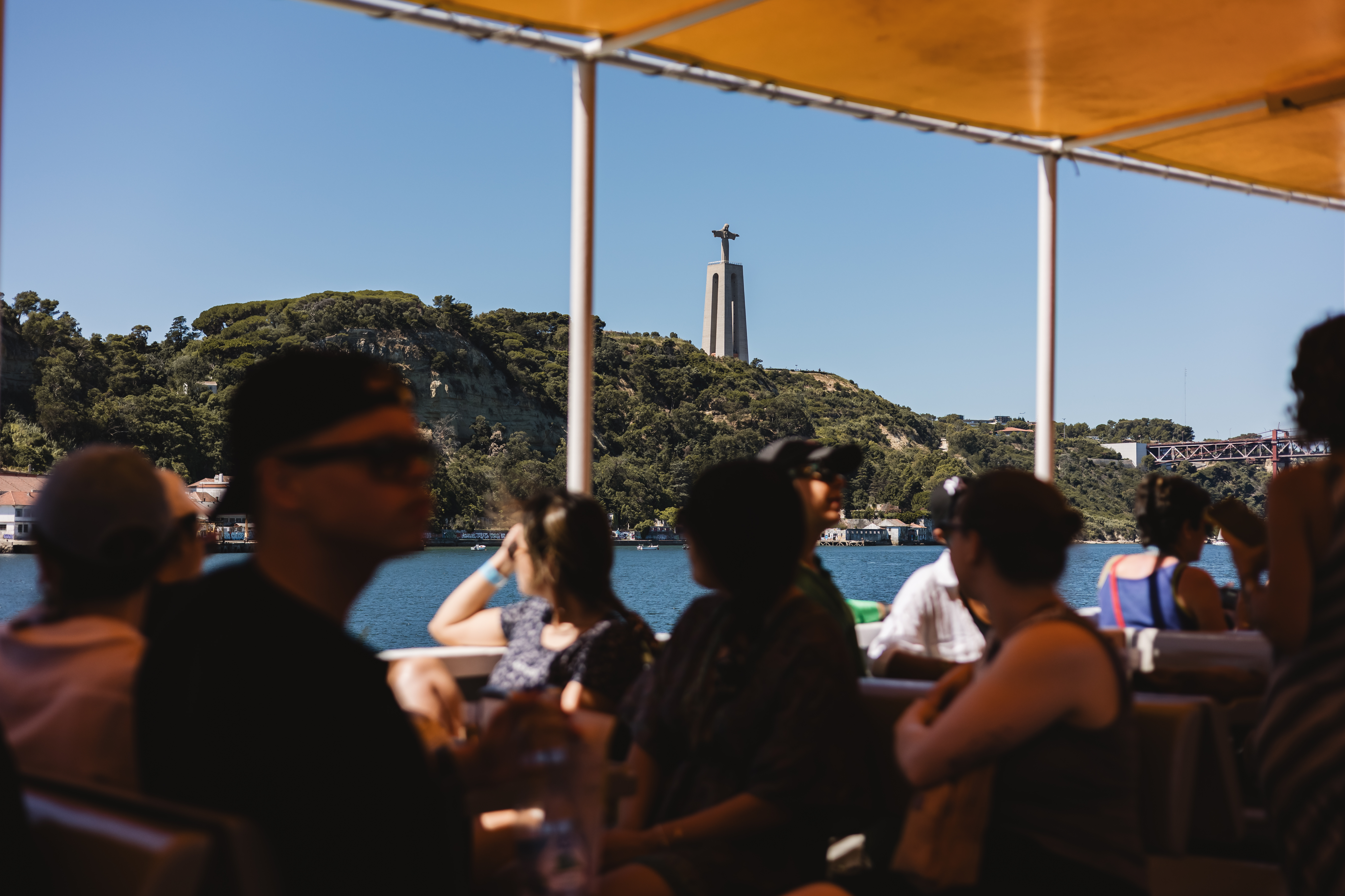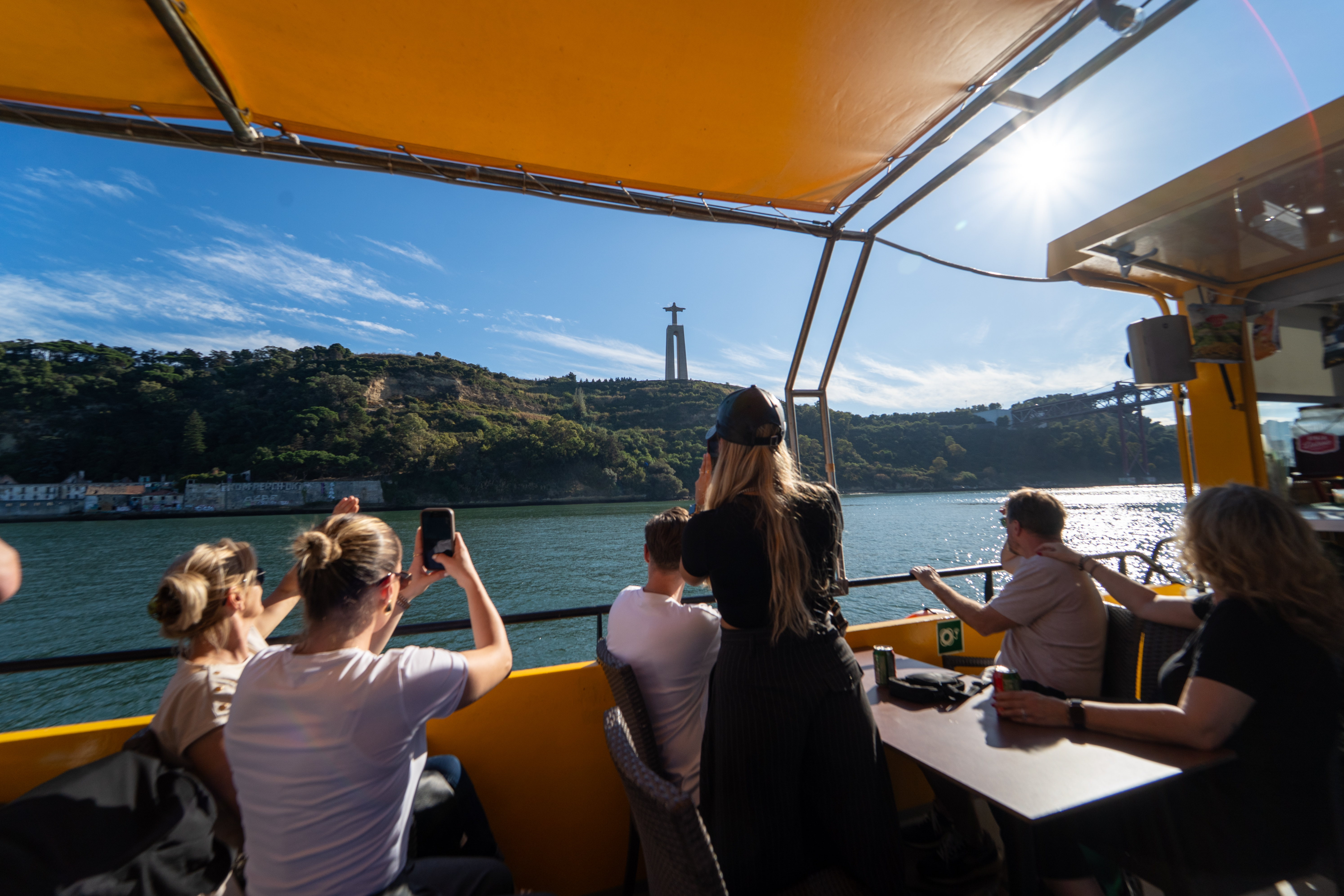We cross to the south bank, Cacilhas, where we see the emblematic Christ the King. And as you glide slowly across the Tagus River on this Yellow Boat tour, you can admire the most important monuments, such as São Jorge Castle, the 25th Abril Bridge, the Belem Tower or the Jeronimos Monastery.